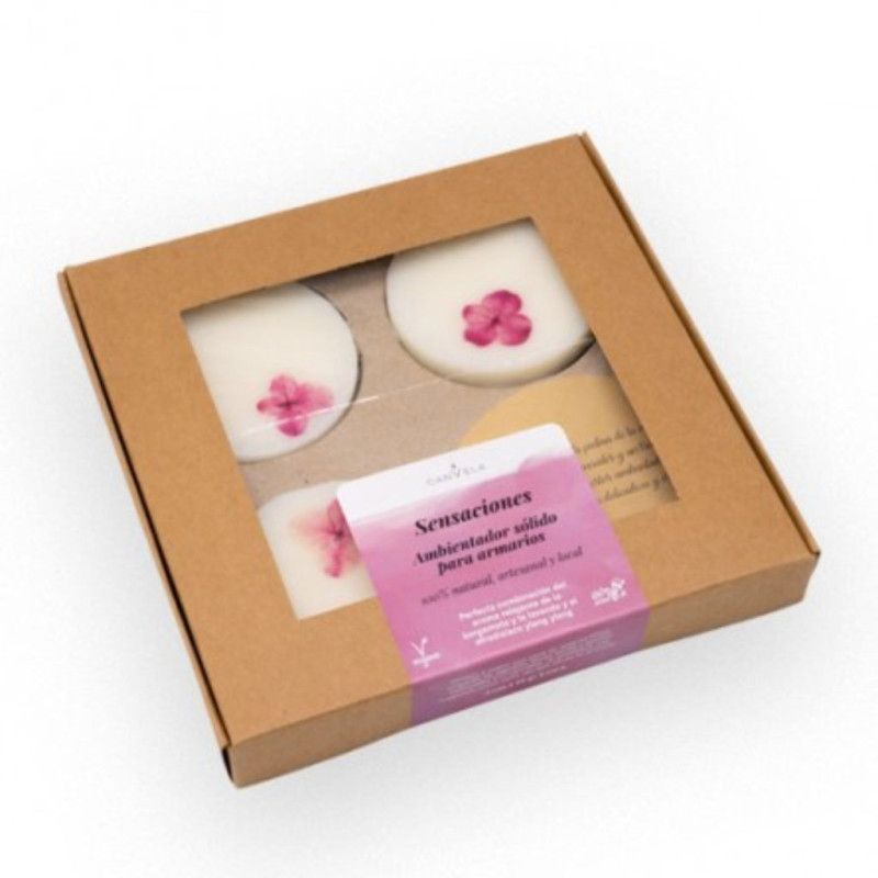 Ambientadores sólidos elaborados en España uno a uno de forma artesanal con cera de soja y aceites esenciales econaturales.