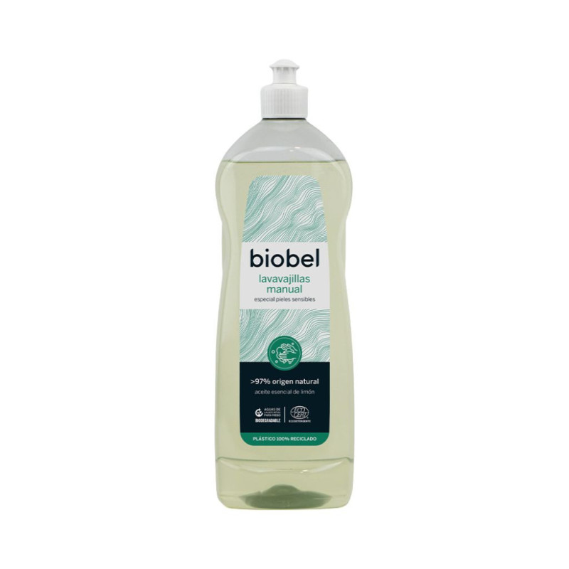 Eficaz lavavajillas manual ecológico, aromatizado con aceite esencial de limón, que limpia, desengrasa y abrillanta de manera natural todo tipo de utensilios de cocina.