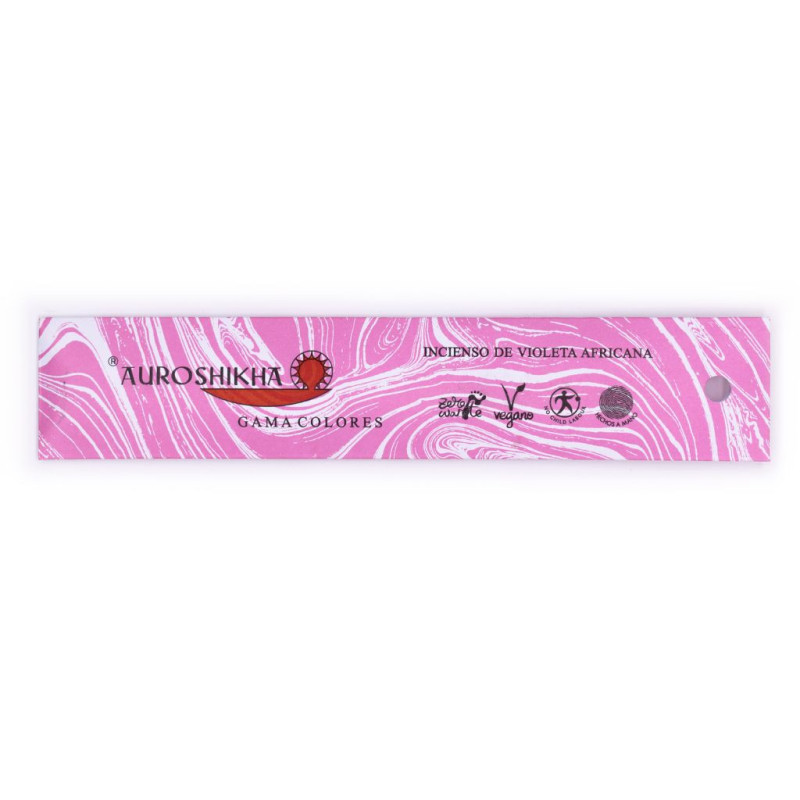 Incienso Auroshikha delicado aroma a Violeta africana, elaborado con extracto de violetas.