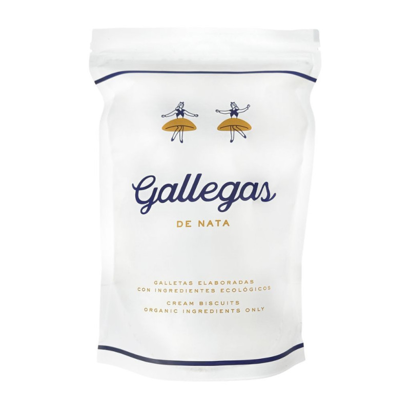 Galletas de nata de la casa artesanal 'Gallegas de nata'. Elaboradas al horno con productos sin conservantes ni colorantes, con un agradable sabor a nata y un característico color dorado. Igualmente, la tradición sigue prevaleciendo en sus procesos de fabricación, todos los productos son elaborados de manera artesanal con el único objetivo de conseguir una alta calidad en el resultado final, manteniendo siempre su seña de identidad: “El Sabor de Galicia”.